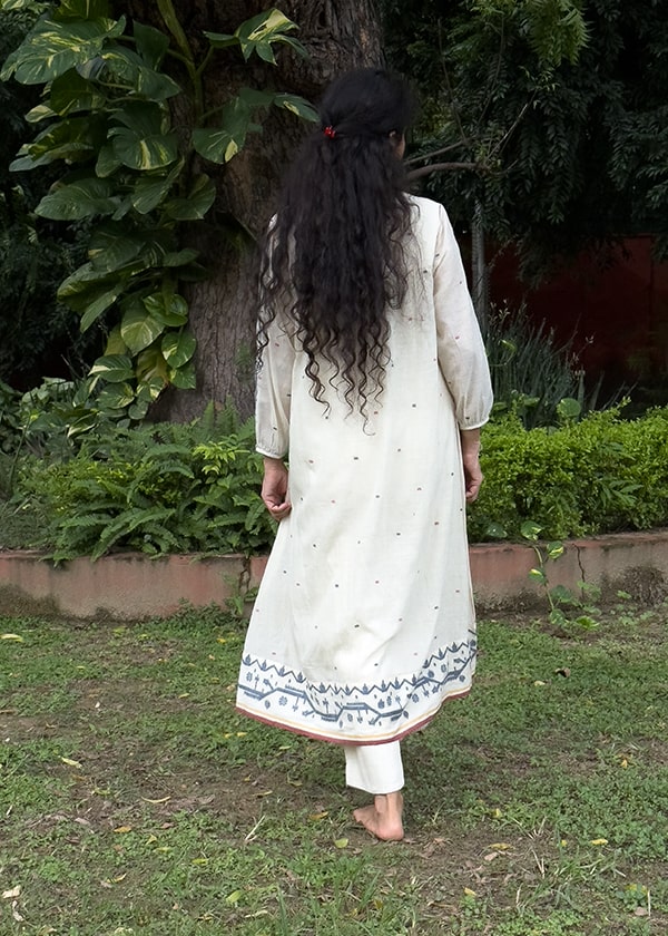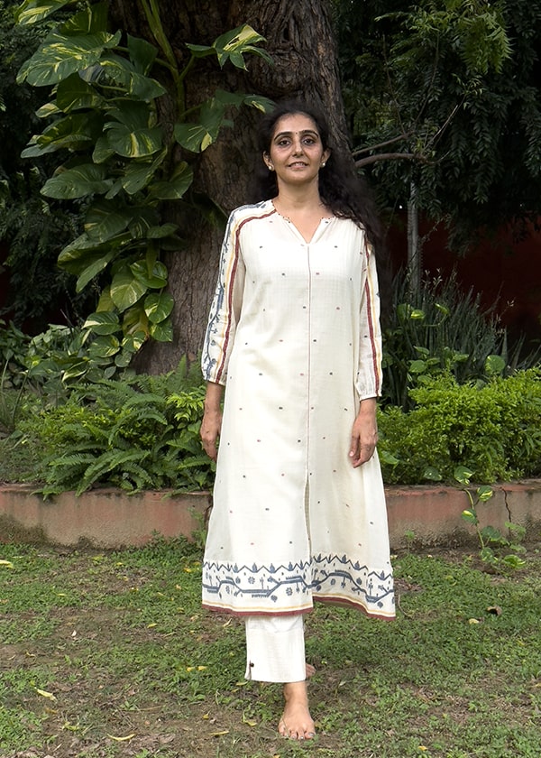 All Madhuu garments are generally loose fitted and the garment measurements per size are 2 inches more than the chest measurements mentioned above and flared at the hips depending on garment style.