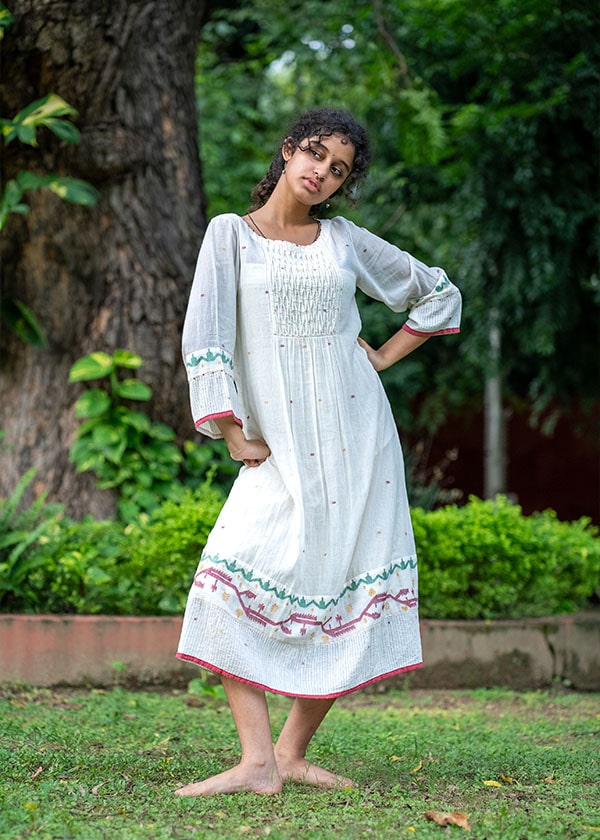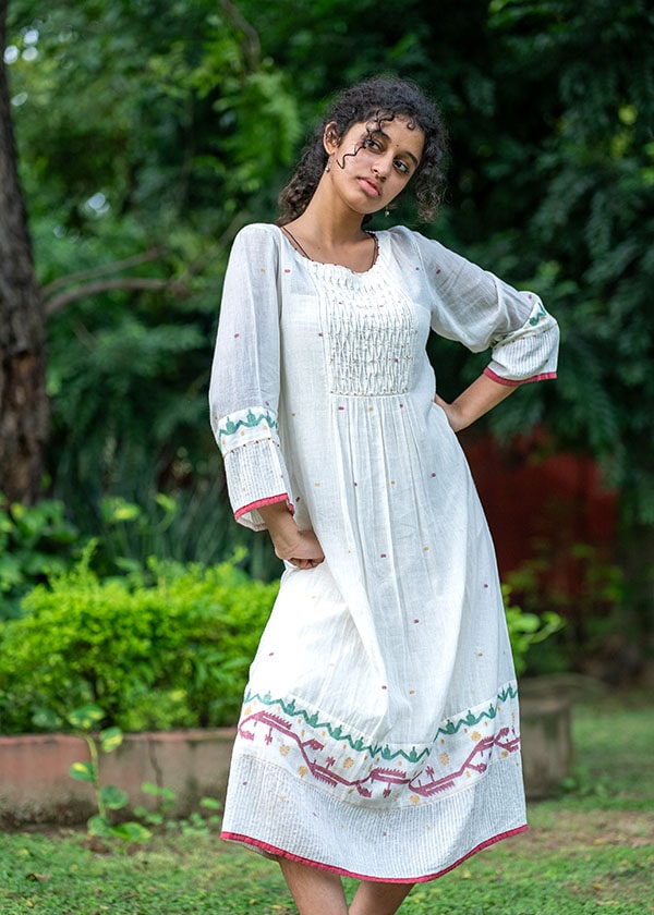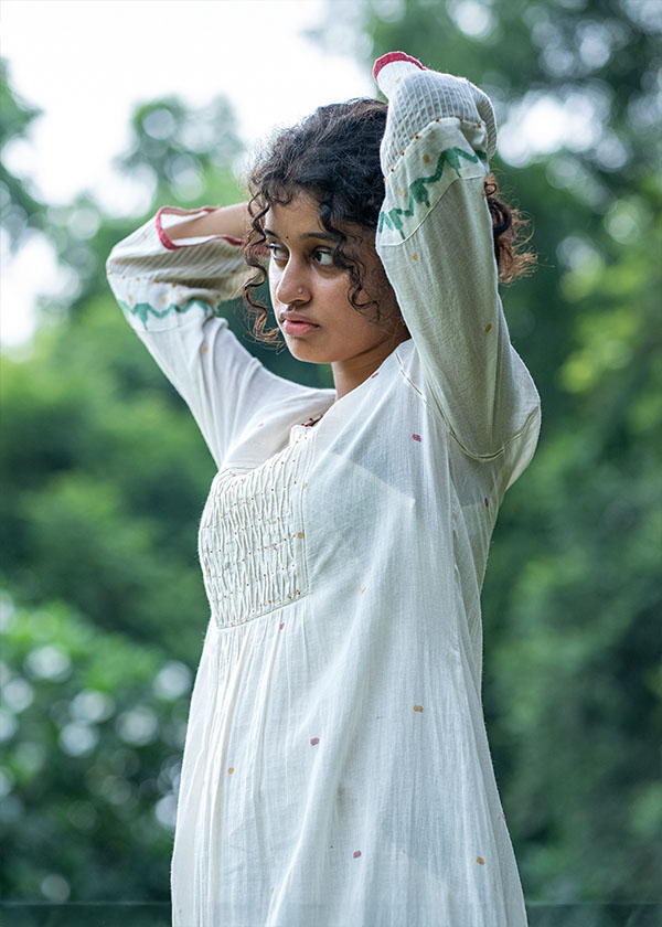 All Madhuu garments are generally loose fitted and the garment measurements per size are 2 inches more than the chest measurements mentioned above and flared at the hips depending on garment style.